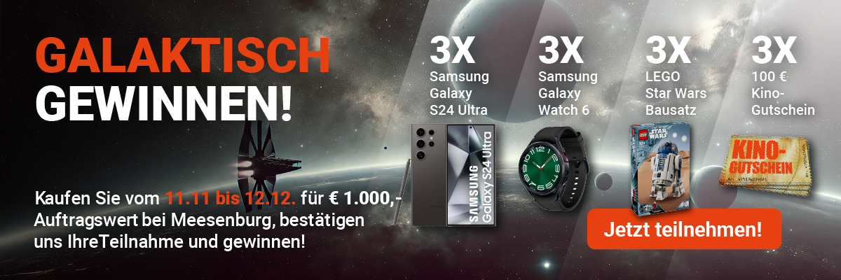 Sie haben im Zeitraum vom 11.11. bis zum 12.12.2024 für mindestens 1.000 € Auftragswert bei Meesenburg eingekauft? Dann füllen Sie jetzt das Formular aus, um Ihre Teilnahme zu bestätigen, und gewinnen Sie mit etwas Glück tolle Preise!